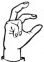На ћирилици написано ЈАБУКА РАКЕЗИЋ састоји се из 13 слова [?]. Исписано ћириличном једноручном азбуком за глувонеме: